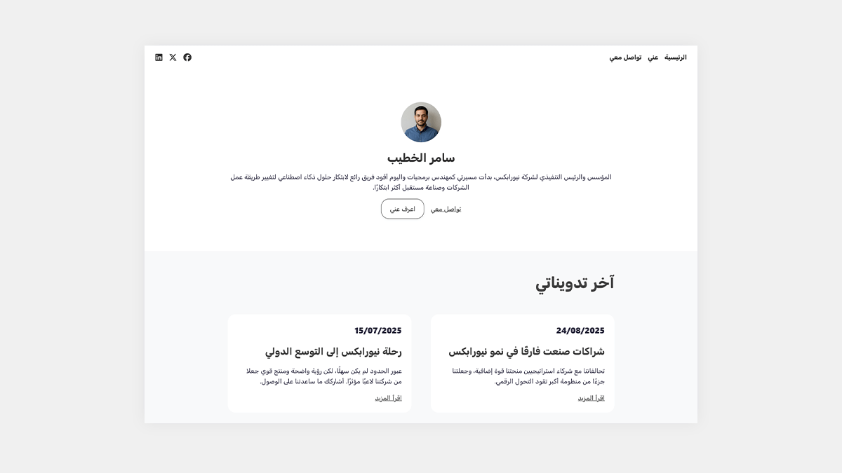 لا يقتصر دور الموقع الشخصي على كونه منصة للتعريف بك، بل يعمل كجسر مفتوح للتواصل مع شركاء وعملاء محتملين أو حتى مواهب تريد الانضمام لشركتك. فمن خلاله، يسهل الوصول إليك عبر قنوات رسمية وصفحة واضحة مثل "تواصل معي"، أو روابط حساباتك المهنية.